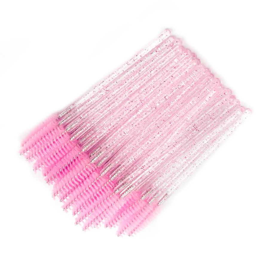 Одноразові щітки для брів і вій з блискітками розові, упаковка 50 шт.